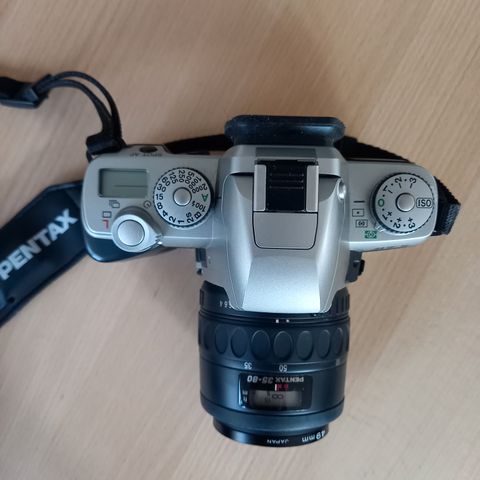 Asahi Pentax SLR kamera i sort farve. Kameraet har manuel indstilling og optisk søger. Designet til analog fotografering med film.