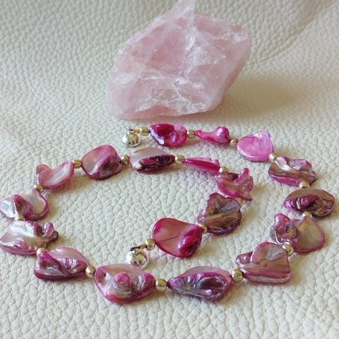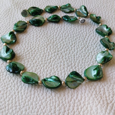 Stor ægte musling i tredobbelt glas-perlekæde - 44 cm lang