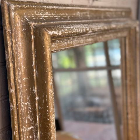 Spejlet i antik stil har en robust træramme, som er omhyggeligt udformet i et dekorativt barokmønster. Dette spejl i barokstil giver straks rummet et elegant, glamourøst og romantisk præg.