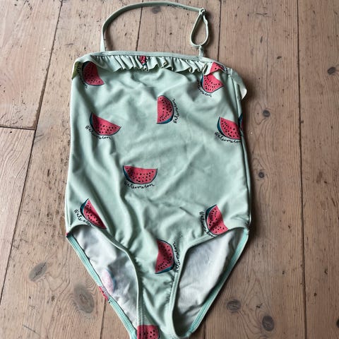 Søgeord: Soft Gallery badetøj, UV-badetøj, pige, badedragt, flæser, blomstret, sommer.