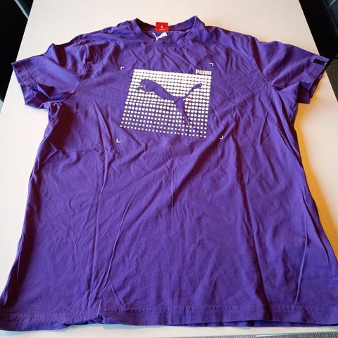 Puma T-shirt i størrelse S til herre. Farven er hvid, og materialet er behageligt og let. Perfekt til både hverdagsbrug og sport.
