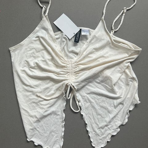 H&M Top i størrelse XS til kvinder. Toppen er sort og lavet af polyester og elastan . Dobbelt i øverste del . Ingen indlæg. G streng. 3 tryklåse.