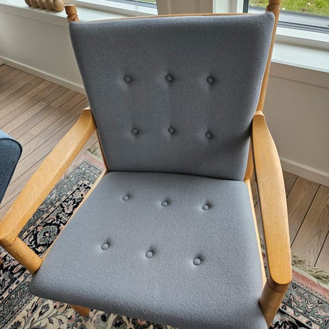 Hans J. Wegner lænestol i top stand. Oprindeligt tegnet til at passe til Børge Mogensens tremmesofa.