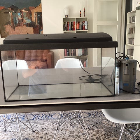 Akvarium med lys og tilbehør