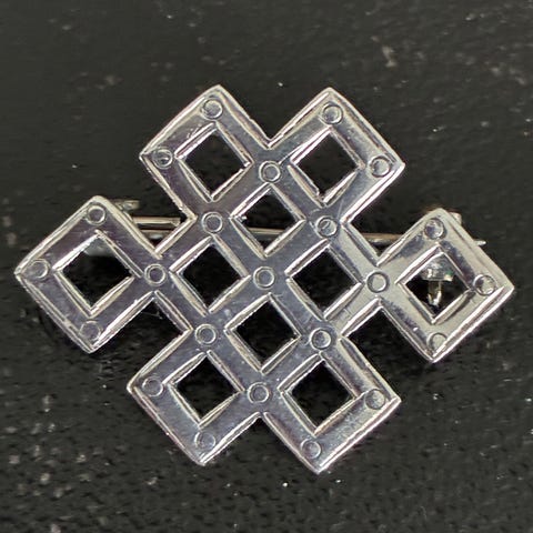 Tibetansk broche i ægte sterling sølv med lille koral-sten