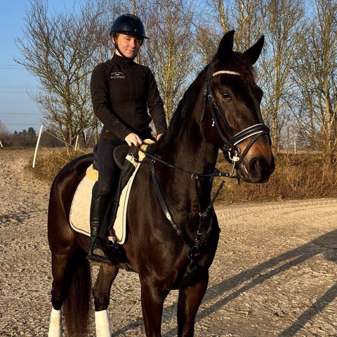 Frisk hoppe der altid er glad for at komme på tur. Kan rides alene. Respekterer hegnet. Har gået med både hopper og vallakker. Aldrig haft en sygedag.