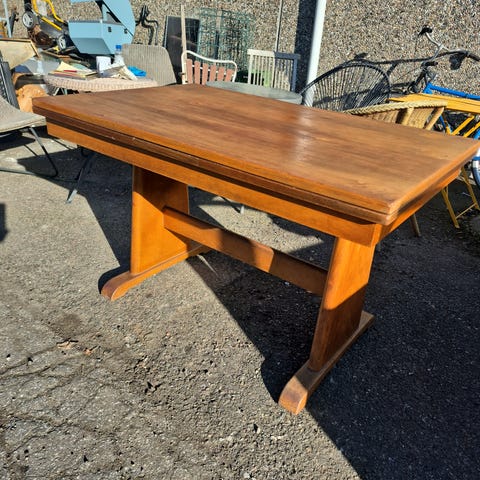 Dette retro bord i egetræ er hjertet i dit nye spiseområde.