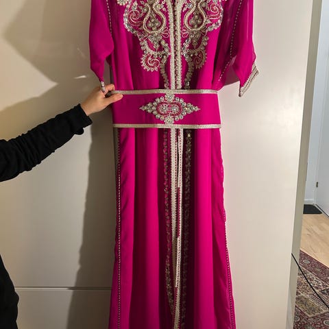 Smuk 2 delt kaftan. Som ny. Håndsyet og med smukke perler og palietter. Fra røg og dyrefrit hjem