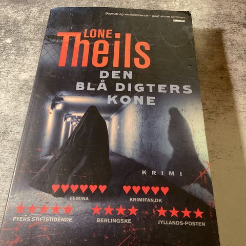 Lone Theils Den blå digters kone bog. Roman af Lone Theils med emner som forfatter, krimi og København.