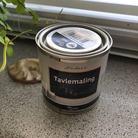 Helt ny (uåbnet) bøtte med med mat, farveløs tavlelak.