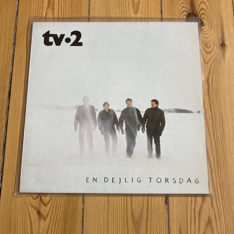 tv-2 Rigelige Mænd vinylplade med cover. Musikudgivelse i standard størrelse med billede af himmel og silhuetter på coveret.