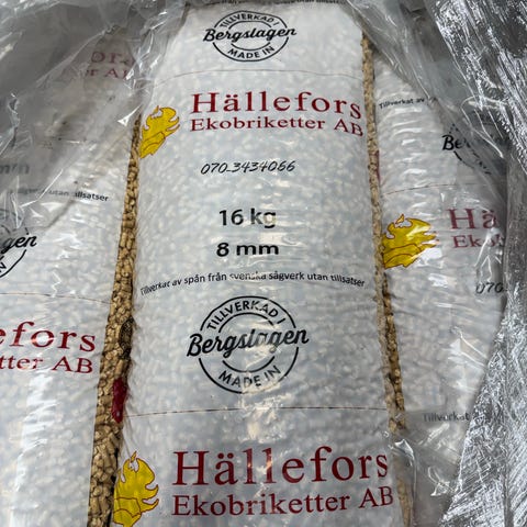 Sort tørv/briketter til brændeovn.