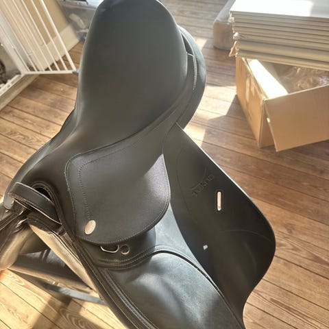 Sadlen er kun nøjsomt prøvet på og aldrig redet i. Hesten havde desværre brug for en anden sadel.