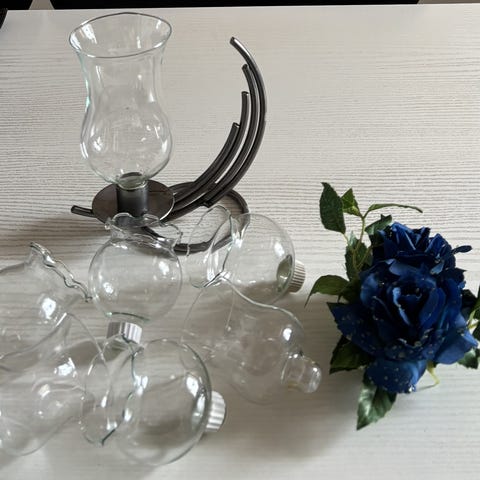 Andet, 2 lysestager i smedejern og glas, ukendt, 2 høje lysestager til store lys ca 18 cm i højde farvet glas og i fin stand. sendes for købers regning eller hentes her