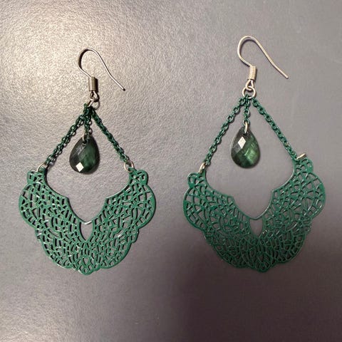 Vintage øreringe - Dråbeform med marmoreret blå dråbe.