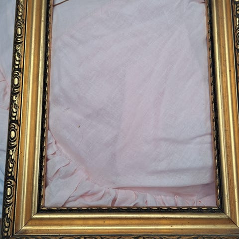 Helt unikt og fint håndbroderet gammelt billede i virkelig smuk og meget dekorativ kraftig sort ramme med guldindfatning. B: 62,5 cm, H: 48 cm.