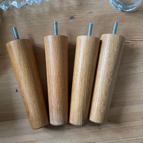 Jeg har fået 4 ben af typen A 17 cm i oak/egetræ fra sofacompany i overskud.