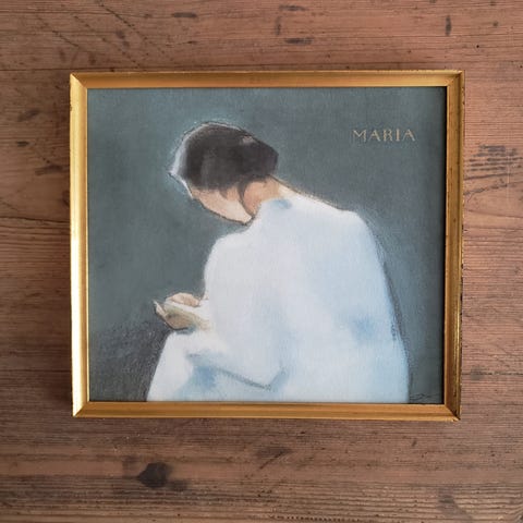 Originalen er et maleri af den svenske malerinde Amalia Lindegren og er fra 1850'erne - Dette er det et gentryk, trykt på 200g syrefrit specialpapir, og sat i en enkel gammel guldramme med sjæl og patina, renset og med ny bagbeklædning