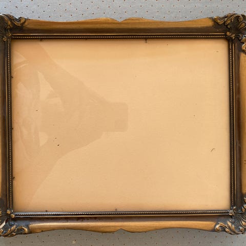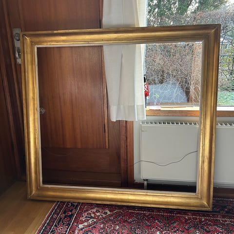 En ældre rektangulær guldramme i træ med en fin enkel profil. Hvis du ikke ønsker at bruge rammen til et billede, er den også perfekt til montering af et spejl eller opslagstavle i kork eller em træfiberplade beklædt med stof mm.