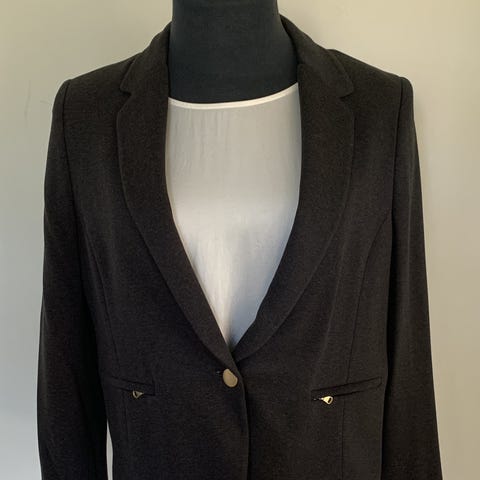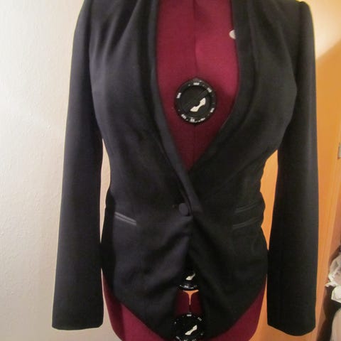 DAY Birger et Mikkelsen dame blazer i størrelse 36. Blazeren er sort og lavet af polyester. Den har klassisk design med knaplukning og lommer, velegnet til formelle og afslappede anledninger.