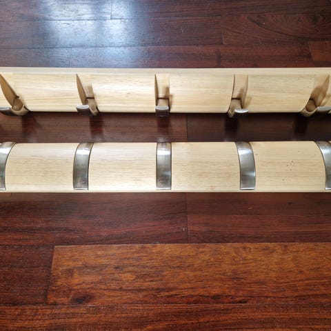 2 knagerækker fra Nordal. Sort træ med messingkroge. 8 kroge pr knagerække.