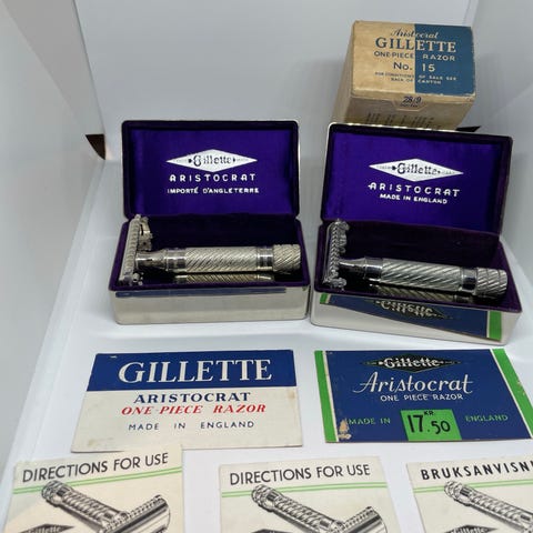 Samling af gamle barberblade fra forskellige mærker som Gillette, Barlett, Partner, Zacco, Darling, Zenit, Urban, og flere. Barberbladene er i original emballage og varierer i type og design.