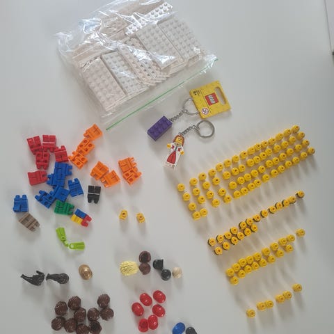 Blandede LEGO dele til minifigurer - hår, skæg og visirer. Alle i fin stand 🙏🏼
