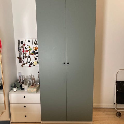 Skabet står på 2 sal i kbh nv uden elevator. Man skal selv som udgangspunkt kunne bære skabsdelene ned. Skabet skal skilles ad inden.