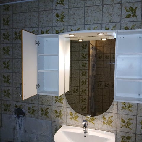 Sælger et praktisk badeværelsesskab med spejllåge.