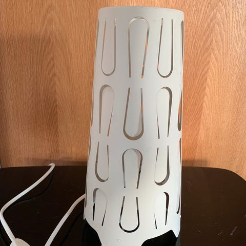 IKEA bordlampe i hvid farve. Lampen har et firkantet design.