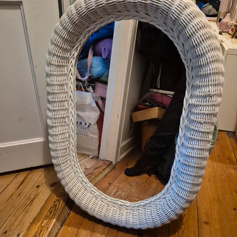 Super flot lyst ovalt kurveflet spejl i skøn romantisk stil på 42 x 33 cm og i perfekt stand til 179,-