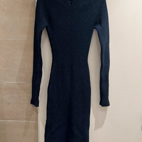 Strikkjole fra H&M, i grå/brun og størrelse M. Brugt 2 gange og kommer fra røg, duft og dyrefrit hjem.