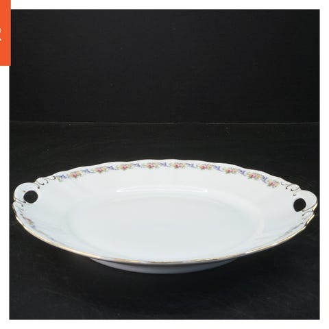 Rundt serveringsfad fra MENU i hvid porcelæn. Tallerkenen har en enkel og minimalistisk design, velegnet til servering af mad.