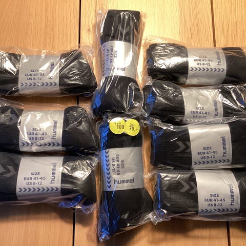 8 par Hummel strømper i str. 36–40, sort. Købt i november 2025 og brugt i ca. 2 måneder. De er i god stand, men føles for ru mod min sarte hud.