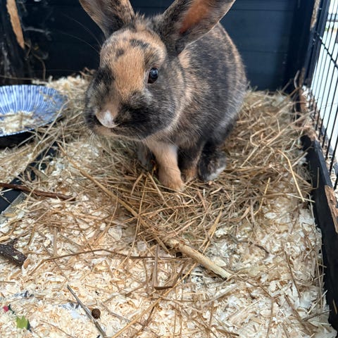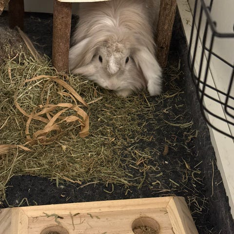 Kanin eventuelt med bur gives bort. Den hedder Eddie er to år gammel og af racen Teddy løvehoved. Den er tam, og nysgerrig men kræver en del pelspleje som vi pt. ikke kan overskue.