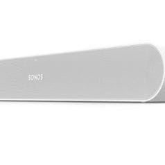Sonos Ray soundbar med lukket kabinet i hvid farve. Mål: 55,7 cm bredde, 7 cm højde, 9,3 cm dybde. Vægt: 1,9 kg. Understøtter Wi-Fi, NFC, SonosNet, Airplay 2, TIDAL Connect og Sonos Multiroom. Fjernbetjening og integreret vægbeslag er ikke inkluderet. Stereo parring understøttes ikke.