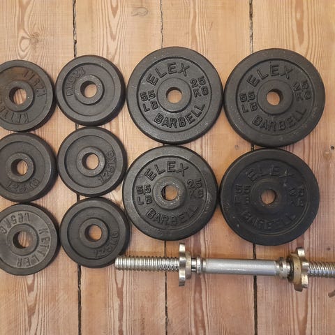 Fantastisk kvalitet og godt greb. Får dem ikke brugt. 12,5 kg stk. Sælges kun samlet.
