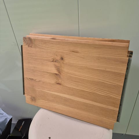 Der medfølger 7 hylder og originale dyvler til at fastgøre hylder til 6 af dem. De sidste to har siddet fast med løstsiddende søm, som også medfølger.