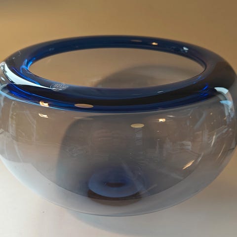 Sælger min Holmegaard stor Thule salatskål i farven smoke fra min samling.