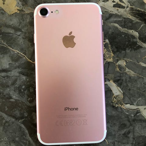 iPhone 7 Rosa Gold 128GB med lader og rosa cover.
