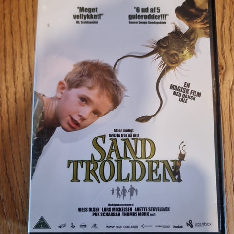 DVD med filmen Sandtrolden. Filmen indeholder en historie om en dreng og en sandtrold, og er en familiefilm.