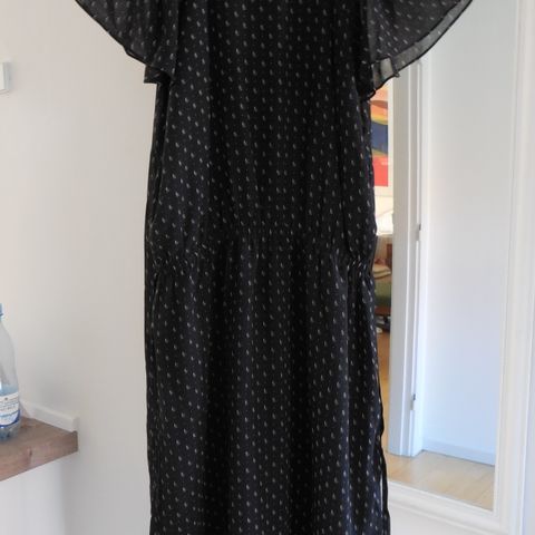 Den er sort i bundfarven med blomster i hvid grønne farver.
