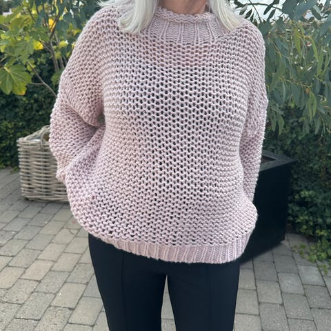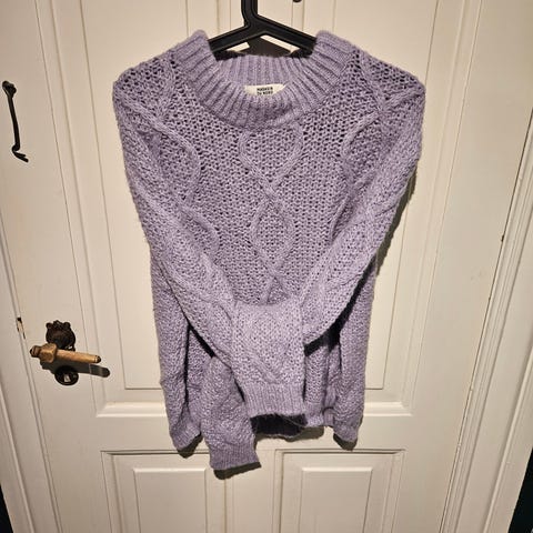 Lilla strik med 27% mohair fra Magasin Du Nord. Den er ikke brugt synderligt meget og er i god stand. Farven snyder lidt på billederne. Den er lidt over i en pastellilla eller lyselilla farve.