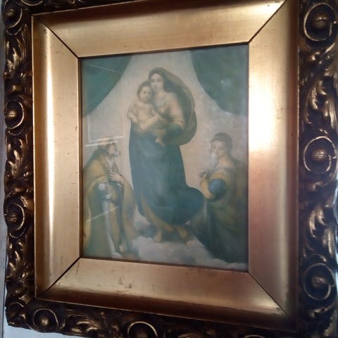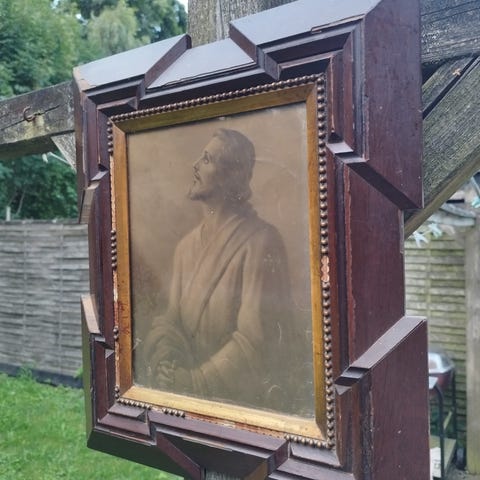 Det Sidste Nadver maleri i ramme. Maleriet viser den bibelske scene med Jesus og hans disciple ved det sidste måltid. Indeholder detaljeret gengivelse af figurerne og omgivelserne. Rammen er dekorativ og passer til klassisk indretning.