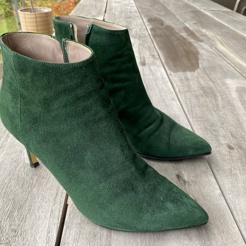 Smukke håndlavede Charlie i flaskegrønt ruskind. Brugt men sparsomt. Se billeder for stand.