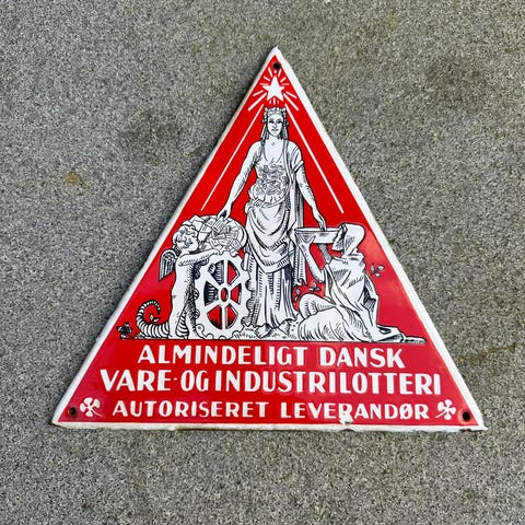 Emaljeskilt Almindeligt Dansk Vare og Industrilotteri.
