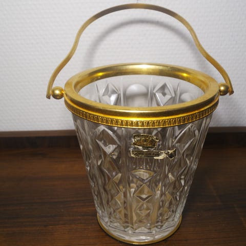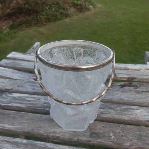 Art Déco isspand i glas og sølv med muslingformede håndtag