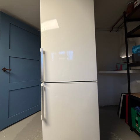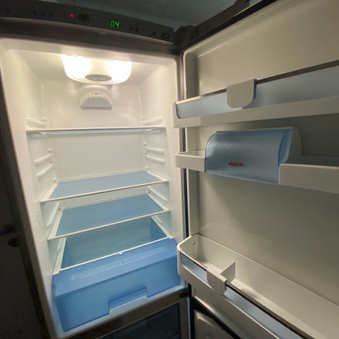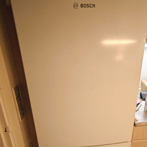 Bosch køle-fryseskab med rustfrit ståloverflade. Kombineret køle- og fryseskab designet til opbevaring af fødevarer ved forskellige temperaturer.