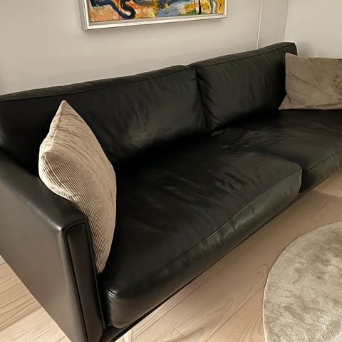 Jeg sælger denne skønne sofa, som er i virkelig god stand for mine søde svigerforældre. Dansk design - ingen spor fra brug og i det fineste lyse læder.