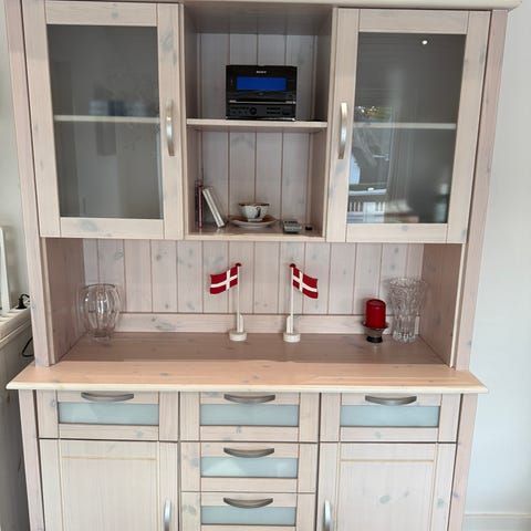 • Vitrineskab med glaslåger og hylder